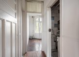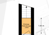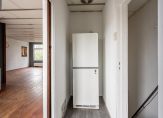 Overloop met garderoberuimte, plaats voor een koelkast en toegang tot de vertrekken;