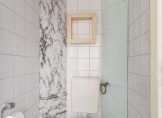 Eenvoudige badkamer circa 2 m² voorzien van een douche en wastafel.