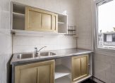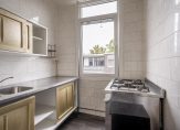 Eenvoudige keuken aan de achterzijde circa 4 m² met een deur naar het balkon en kunststof kozijnen met dubbel beglazing.
