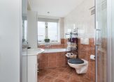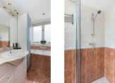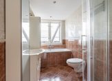De keurige badkamer is voorzien van zowel een ligbad als douchehoek, een derde toilet, een wastafelmeubel met spiegelkast en inbouwspots en een raampje voor natuurlijke ventilatie.