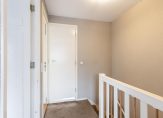 De overloop is voorzien van een geheel betegelde toiletruimte met een hangend closet en fontein.