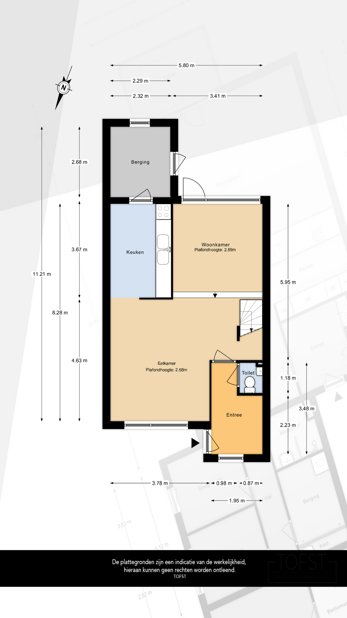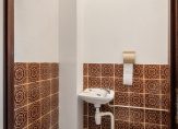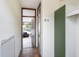 Entree woning, ruime ontvangsthal voorzien van meterkast en toilet met hand wasbakje, gedeeltelijk betegeld en voorzien van luchtafvoer;