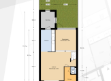 – 11 meter diepe achtertuin op het zonnige zuiden met achterom;