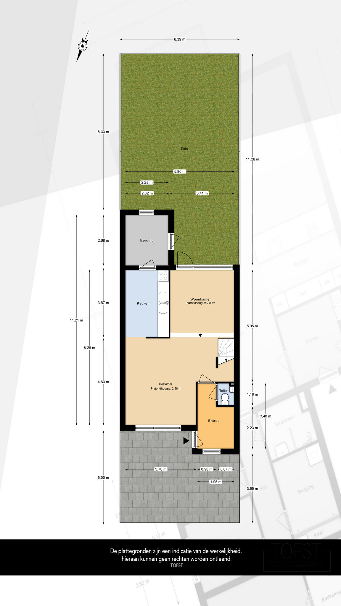 Bijkeuken circa 6 m² met toegang tot de tuin;