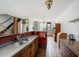 Open keuken circa 8,5 m² voorzien van los kooktoestel met afzuigschouw en toegang tot de bijkeuken;