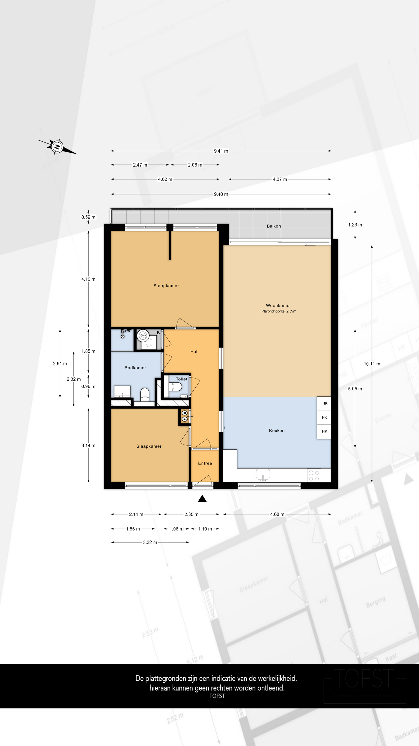 – Woonoppervlakte circa 97 m² (volgens de meetinstructie);