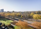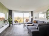 De lichte en ruime woonkamer heeft mede door de nieuw geplaatste kunststof schuifpui een heerlijke lichtinval en toegang tot het gezellige en zonnige balkon. Dit fijne balkon is gelegen op het westen en is voorzien van mooie kunststof vlonder delen, zonwering en een prachtig uitzicht.