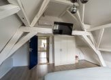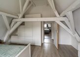 De moderne, matzwarte keuken is volledig uitgerust en perfect voor liefhebbers van koken en gezellig samenzijn. Op de bovenverdieping vind je twee royale slaapkamers met authentieke dakspanten, wat zorgt voor een sfeervolle uitstraling. De badkamer, in 2022 vernieuwd, ademt luxe met een inloopdouche en een strak design met industriële details. Er is ook nog een separaat bereikbare 3e slaapkamer ook te gebruiken als werkkamer.