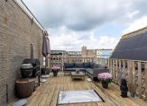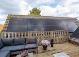 Zonnig terras op het westen circa 15 m² met houten vlonder delen.