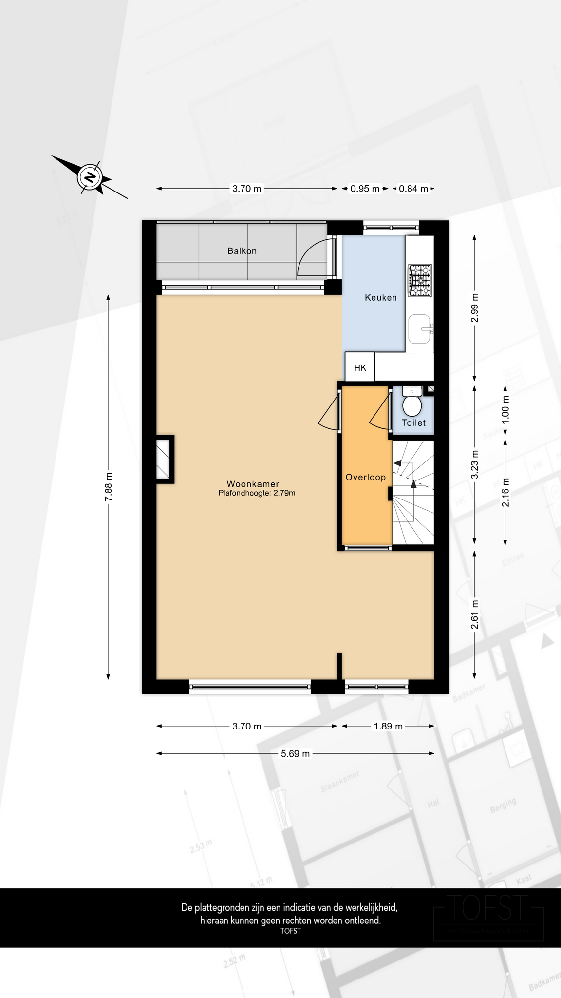 Overloop voorzien van trap naar de tweede verdieping en toiletruimte.