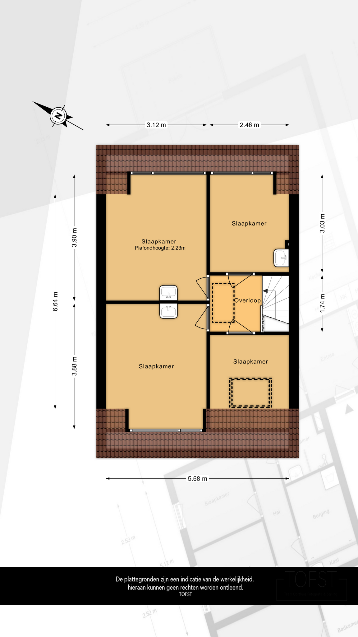 Slaapkamer 4 aan de voorzijde circa 6 m² voorzien van dakraam.