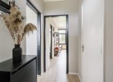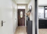 Vanuit de centrale hal heeft u toegang tot de diverse vertrekken. In de hal vindt u de garderoberuimte en de inpandige berging met de opstelling van de boiler en de meterkast. Nagenoeg de gehele woning is voorzien van een moderne hout look laminaatvloer met hoge plintafwerking en strakke wandafwerking.
