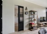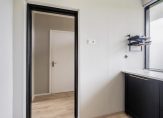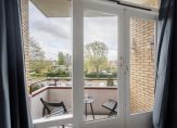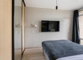 Vanuit de woonkamer komt u middels de zwarte schuifdeur uit in de slaapkamer aan de achterzijde. Deze heeft een oppervlakte van ruim 10.5 m², een moderne hout look laminaatvloer met hoge plintafwerking, strakke wandafwerking en verstrekt u de toegang middels de openslaande deuren tot het balkon.