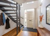 Via de ruime oprit, die plaats biedt aan drie auto’s op eigen terrein, bereikt u de prachtige ontvangsthal met vide. Vanuit de hal heeft u tevens toegang tot de inpandige garage. De hal is voorzien van een meterkast, garderoberuimte en een toiletruimte met hangend toilet, hand wasbakje en mechanische afzuiging.