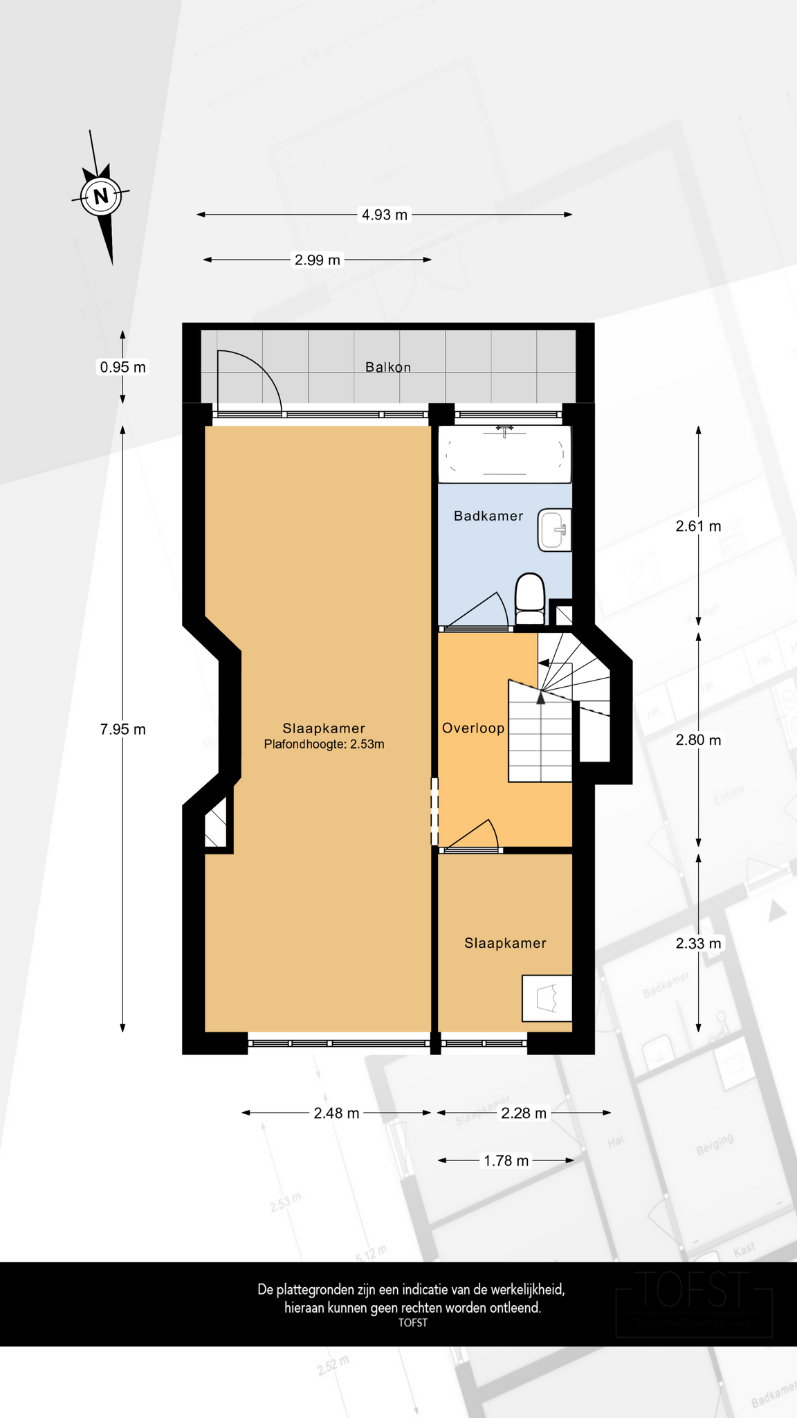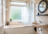 Op de slaapverdieping vind je drie ruime slaapkamers, maar met een kleine aanpassing kan de woning eenvoudig worden teruggebracht naar de originele indeling met vier slaapkamers. De badkamer is voorzien van een ligbad, wastafel, toilet en natuurlijke ventilatie via een raam, maar biedt ook mogelijkheden voor uitbreiding op het aangrenzende balkon.