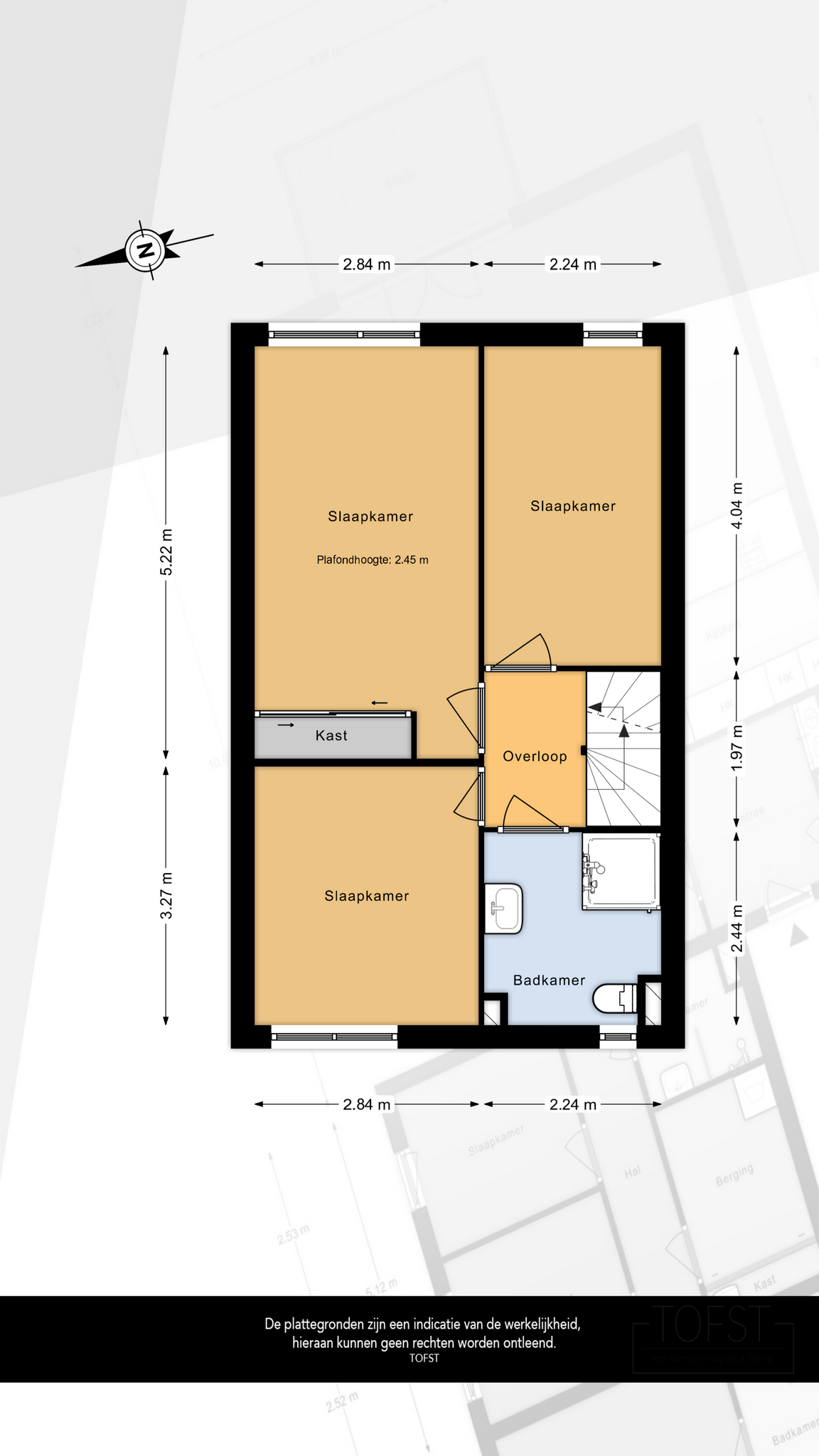 Vanaf de overloop wordt de toegang verstrekt tot de drie fijne slaapkamers en de moderne badkamer.