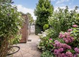 De lichte woonkamer is tuingericht, voorzien van een plavuizenvloer en biedt middels de schuifpui toegang tot de zonnige achtertuin. De achtertuin is 11 meter diep, gelegen op het oosten voorzien van zonwering, een watertappunt, houten berging en achterom.