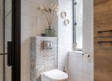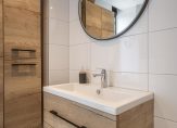 De moderne badkamer is in 2020 vernieuwd en geheel betegeld in een fraaie betegeling. Deze riante ruimte is voorzien van een royale inloopdouche met regen- en handdouche, een tweede hangend closet, wastafelmeubel, ruim bergmeubel en designradiator.