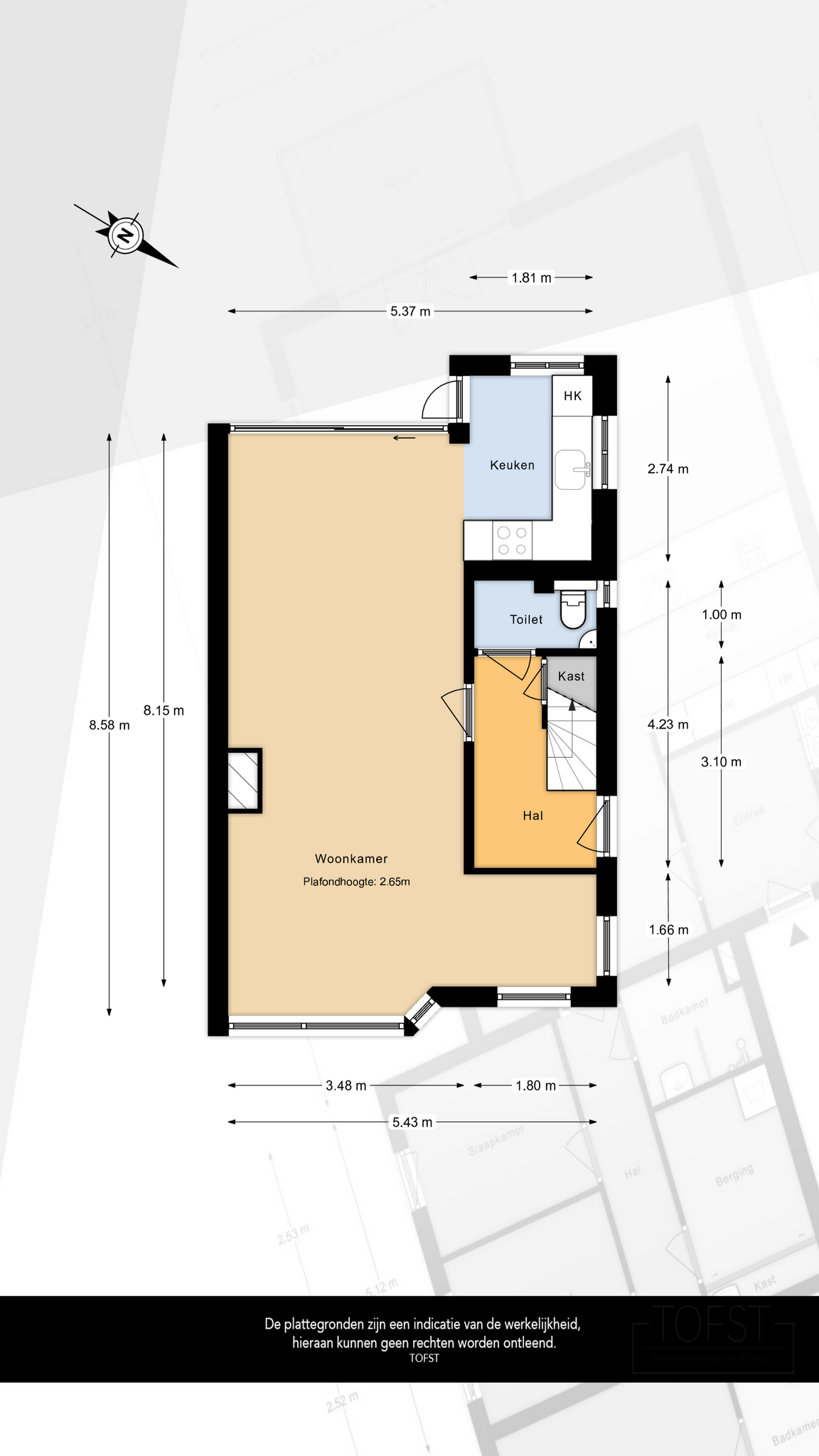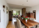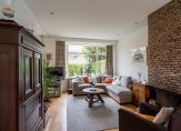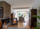 Heerlijk ruime woonkamer circa 30 m², aan de voorzijde voorzien van een erker, zijbeuk en sfeervolle houthaard, aan de achterzijde is de schuifpui voor toegang tot de achtertuin. De begane grond is verder keurig afgewerkt met houten vloerdelen en stucwerk afwerking.