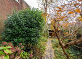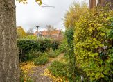 Verzorgde tuin rondom circa 215 m² met oprit aan de achterzijde naar de voormalige garage in de achtertuin.
