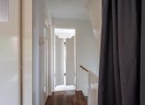 Entree woning met luifel, gang/hal voorzien van garderoberuimte, trapkast met meterkast en toilet.