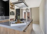De fijne woonkeuken is opgesteld met een kookeiland, waardoor u hier gezellig samen tijdens het koken omheen kunt staan. De keuken is voorzien van alle hedendaagse inbouwapparatuur, waaronder 5-pits gaskookplaat met afzuigschouw, koelkast, vaatwasser, oven, magnetron, heetwaterkraan van het merk Quooker en veel kastruimte.