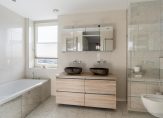 De luxe badkamer is, net als het gehele huis, van alle gemakken voorzien en zeer strak afgewerkt. Deze fijne ruimte beschikt over een inloopdouche met easy-drain en ingebouwde regendouche, een vrijstaand ligbad, een dubbel wastafelmeubel met moderne kommen en inbouwkranen, tweede toilet en een designradiator.