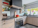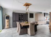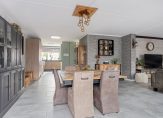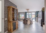 Nadat je de auto op de eigen oprit hebt geparkeerd kom je middels de keurige voortuin bij de overdekte entree van de woning. Bij binnenkomst word je verwelkomd in een ruime entree met meterkast, garderoberuimte en de toiletruimte met wandcloset en fonteintje. De woonkamer is maar liefst 9 meter breed en beschikt over een fraaie tegelvloer met vloerverwarming en airconditioning. Middels dubbele openslaande deuren is er toegang tot de royale achtertuin. De open keuken is ruim van opzet en bevindt zich aan de voorzijde van de woning. De keuken heeft een hoekopstelling en een rechte opstelling met ‘koffiecorner’. Alle hedendaagse inbouwapparatuur is aanwezig zoals een grote koelkast en vriezer, 6 pits gaskookplaat met dubbele oven, vaatwasser, magnetron en quooker.
