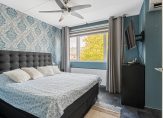 De eerste slaapkamer op deze etage ligt aan de achterzijde en beslaat de gehele breedte van de verdieping. Deze kamer is ook voorzien van een rolluik. De tweede slaapkamer ligt aan de voorzijde van de woning.
