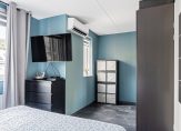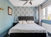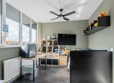 De overloop biedt toegang tot een bergingsruimte en de twee slaapkamers. Deze gehele etage is voorzien van een laminaatvloer en beide slaapkamers zijn voorzien van airconditioning.