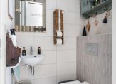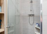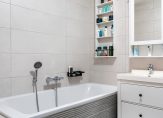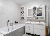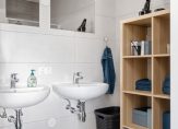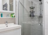 De tweede badkamer is volledig betegeld en beschikt over een douchehoek, dubbele wastafel en designradiator.