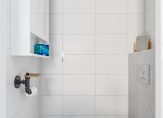 De bergingsruimte is ingericht als stook- en wasruimte en beschikt over aansluitingen voor zowel de wasmachine als droger en de dubbele cv-opstelling. Ook bevindt zich hier de omvormer van de zonnepanelen, de mechanische ventilatie-unit en is er nog genoeg ruimte voor extra opslag.