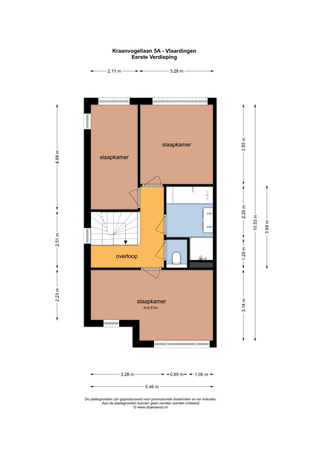 De grootste slaapkamer ligt aan de voorzijde van de woning. Aan de achterzijde bevinden zich de andere twee slaapkamers welke beide voorzien zijn van rolluiken.