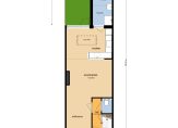 Vanuit de centrale hal komt u uit in de woonkamer met open keuken. De gehele begane grondvloer is voorzien van een moderne vloerafwerking met plintafwerking, de wanden zijn strak afgewerkt en de kozijnen zijn uitgevoerd in hard hout met dubbel glas.