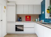 De moderne L-vormige keukenopstelling is in 2023 compleet vernieuwd en voorzien van een inductiekookplaat met geïntegreerde recirculatiekap van het merk Bora, koelkast, vriezer, combi-oven en vaatwasser.
