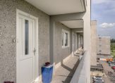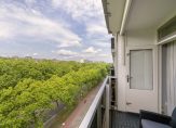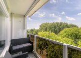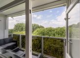 – 27 m² ruime en zonnige woonkamer met deur naar het balkon op het zonnige westen met zicht op groene omgeving;