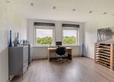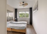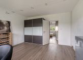 Slaapkamer 2 aan de achterzijde (voorheen 2 slaapkamers en eenvoudig terug te veranderen) circa 18 m² en voorzien van hout look laminaatvloer.