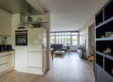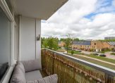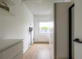 De lichte en ruime woonkamer is voorzien van een recent vernieuwde laminaatvloer, strakke wandafwerking en verstrekt u middels een loopdeur de toegang tot het met vrij uitzicht gelegen balkon op het oosten.