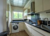 De U-vormige open keuken is gelegen aan de voorzijde van de woning en beschikt onder andere over een 5-pits kookplaat, koelkast, vriezer en vaatwasser. Tevens zijn zowel de wasmachine als geiser in de fijne keuken weggewerkt.