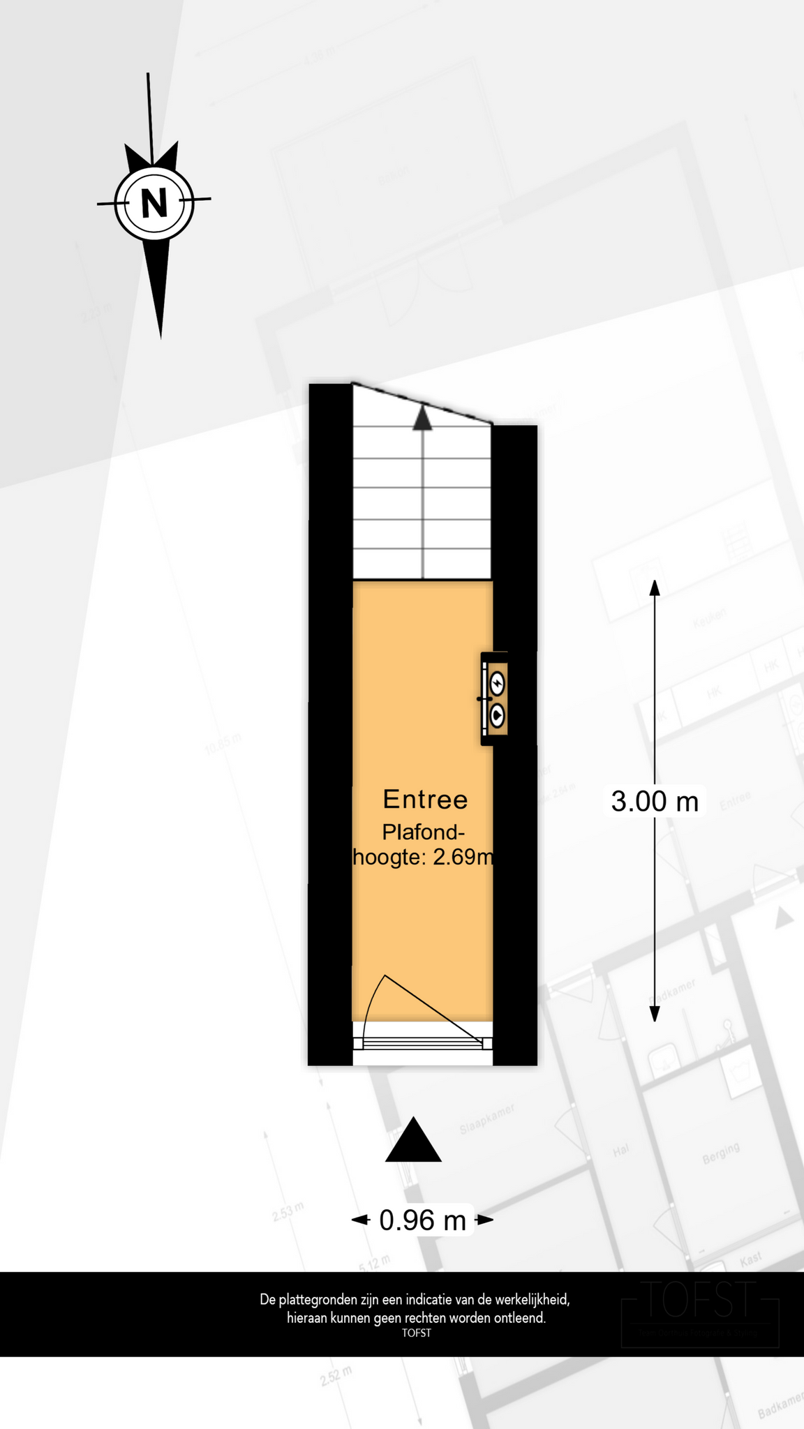 Entree woning, meterkast en trap naar eerste verdieping met overloop.