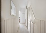 Entree woning, tochthal/gang voorzien van garderoberuimte en een trapkast met meterkast en bergruimte. Tevens toegang tot de badkamer en woonkamer;
