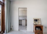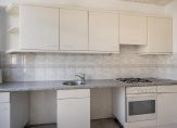 Nette half open keuken uitgevoerd in lichte kleurstelling met kastenruimte, circa 6 m² voorzien van 4-pits gaskookplaat met afzuigkap, geiser en spoelbak;