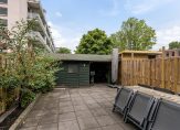 Middels openslaande deuren in de woonkamer wordt de toegang vertrekt tot de onderhoudsvriendelijke achtertuin, voorzien van hedendaagse tegels en een riante vrijstaande berging met achterom en voldoende ruimte tot het stallen van uw fietsen.