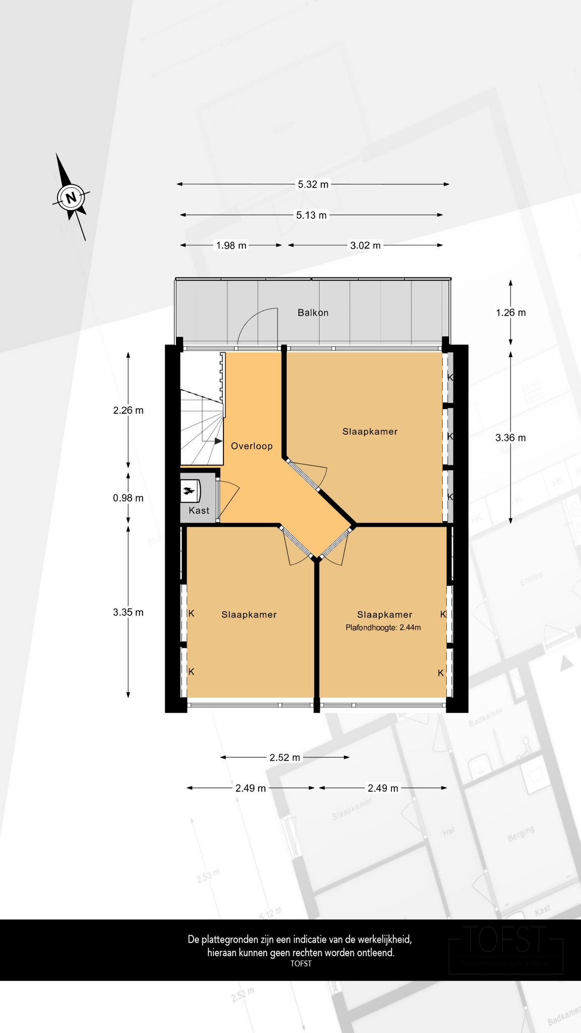 Vanaf de overloop is een vaste kast toegankelijk waarin de cv ketel is opgesteld en middels een loopdeur is het tweede achtergelegen balkon bereikbaar.