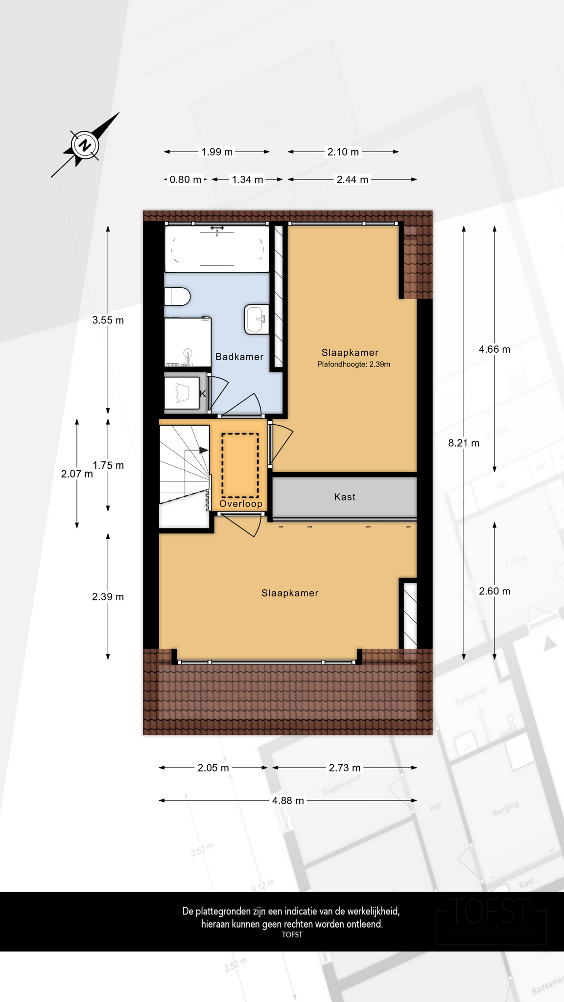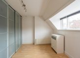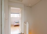 Overloop met toegang tot alle vertrekken en de vliering. Ruime slaapkamer aan de voorzijde van circa 13 m² met ingebouwde kast met schuifdeuren. Tweede slaapkamer aan de achterzijde van circa 12 m². Royale licht betegelde badkamer voorzien van ligbad, douchecabine, wastafel, tweede toilet, designradiator en aparte kast met de aansluiting voor de wasmachine en opstelling Cv combiketel.