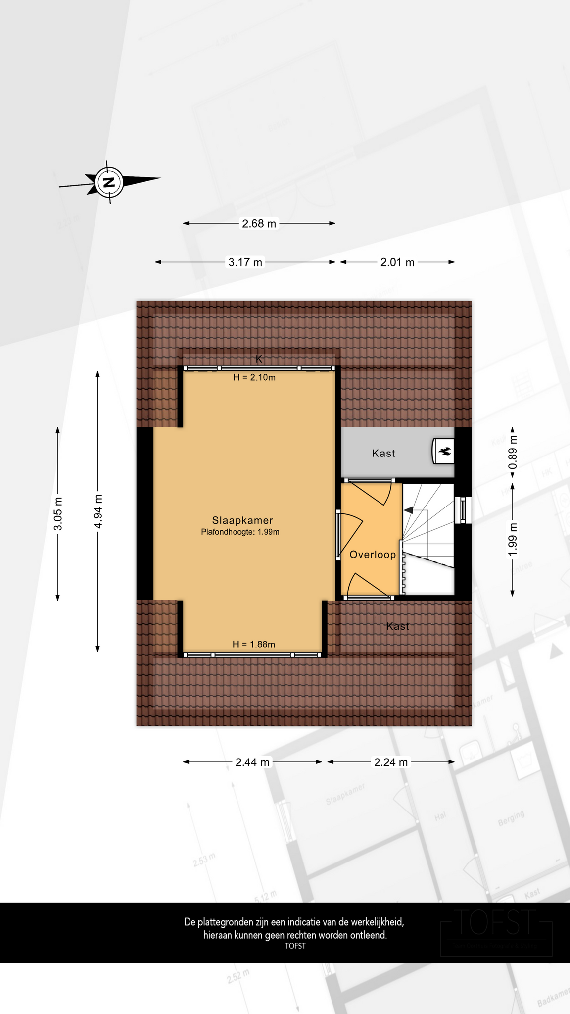 Slaapkamer 3 van circa 15 m² met dubbele dakkapel (deze ruimte is niet meegerekend in de woonoppervlakte, omdat deze volgens de meetinstructie net een paar centimeter te laag is).