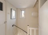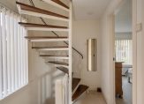 Overloop voorzien van trap naar de tweede verdieping en toegang tot alle vertrekken met originele vakwerkdeuren.