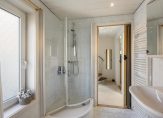 De bovenverdiepingen bieden drie ruime slaapkamers, ideaal voor een groot gezin of als extra werkruimte. De nette badkamer is uitgebouwd en voorzien van zowel een douchecabine als een ligbad en een tweede toilet. Extra opbergruimte is zowel binnen als buiten ruimschoots aanwezig, wat zorgt voor een perfecte balans tussen comfort en functionaliteit.
