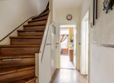 Entree woning, tocht hal voorzien van meterkast en garderoberuimte, gang met vaste kast en trap naar de eerste verdieping.