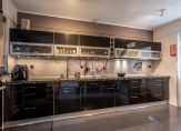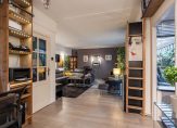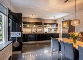 De royale woonkeuken is ook voorzien van vloerverwarming en een plavuizenvloer. Hier is ruimte voor een grote eettafel en dit maakt deze plek ideaal voor heerlijk samen zijn tijdens het koken en lang tafelen. Vanuit de keuken is er ook toegang tot de achtertuin. In de keuken bevindt zich een recht keukenblok met de afzuigkap, inductiekookplaat en vaatwasser en een apart deel met daarin de oven en koffiemachine. In de keuken bevindt zich ook een deur naar de voortuin.